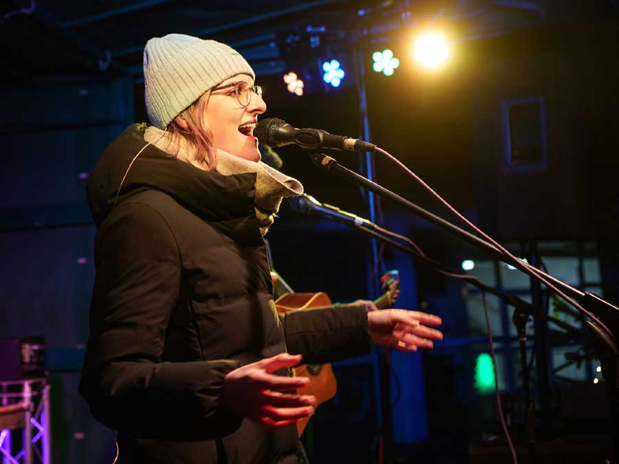 Nach der vorweihnachtlichen Rede des Bürgermeisters, sangen die Flummies das Anschalten der Weihnachtsbeleuchtung an.