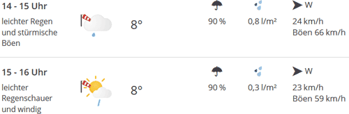 Wetterprognose 2 Stunden vor dem Lauf: (Sauwetter)